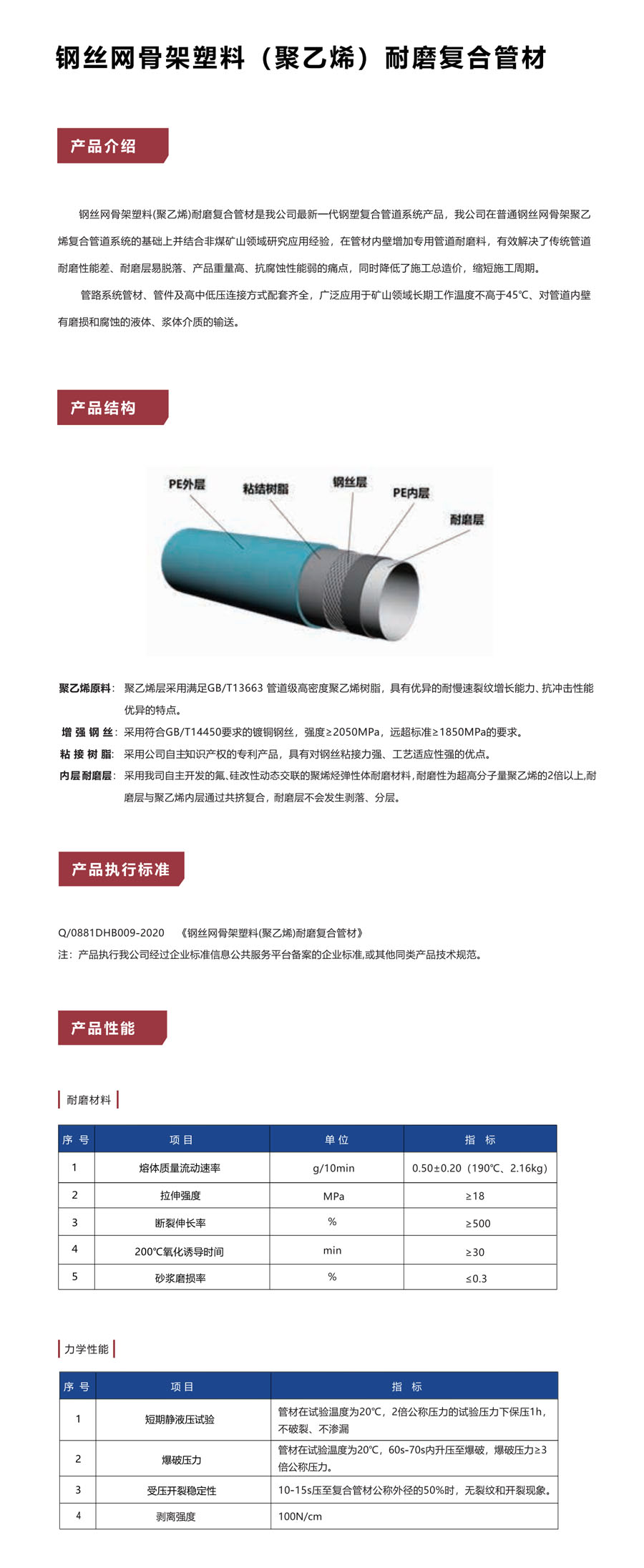 钢丝网骨架塑料(聚乙烯)耐磨管道