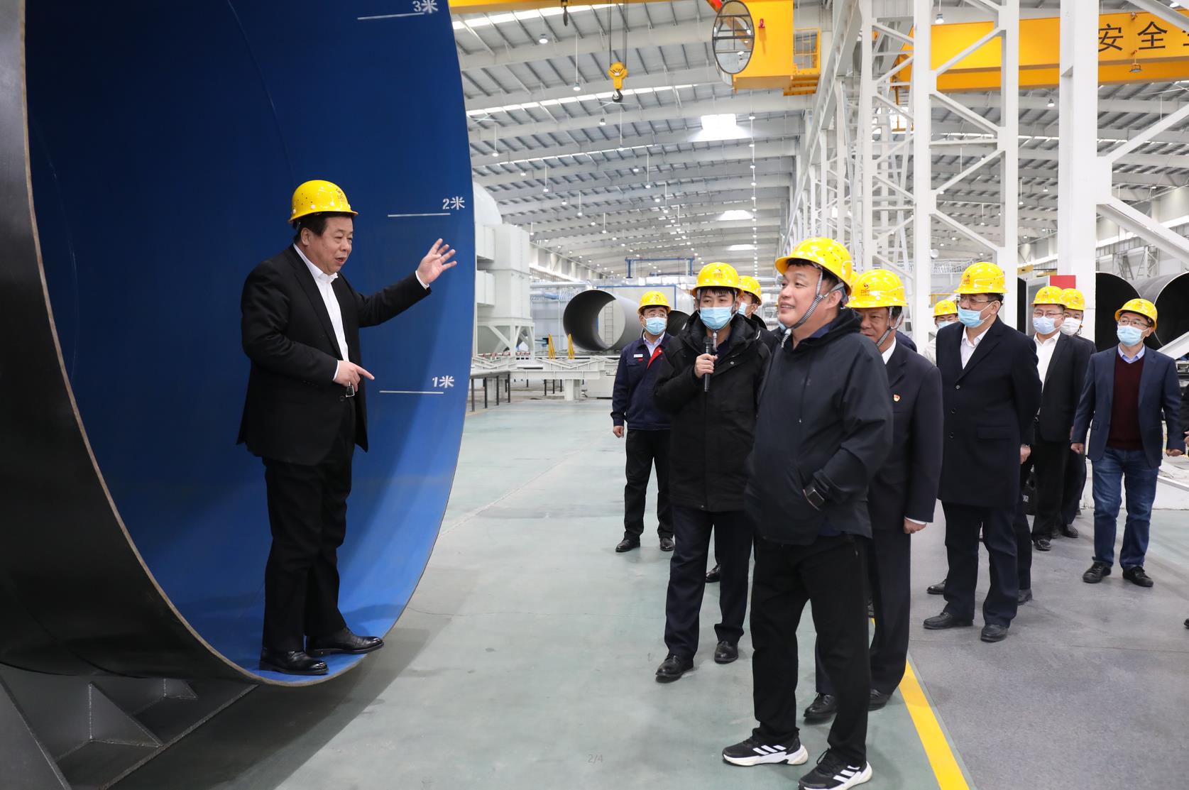 领导一行实地参观了公司PE一体化智能生产车间、大口径重防腐钢管车间和东宏智慧化展厅。技术人员详细讲解了公司产品结构及在市场、设备、研发和产业链上的优势,领导一行对公司目前取得的成果给予充分肯定。