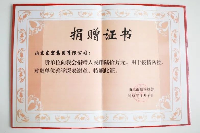 从筹备物资到慈善捐款,无不体现了东宏股份与曲阜市疫情防控共进退的决心和意志。未来,东宏股份将继续保持抗疫初心,冲在抗击疫情的最需要的地方,为疫情防控贡献东宏力量。