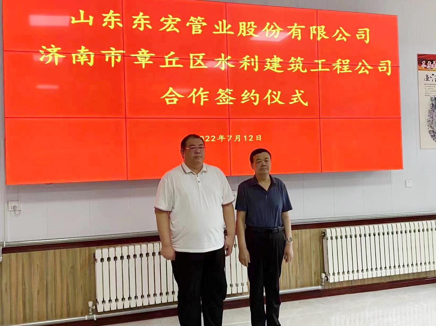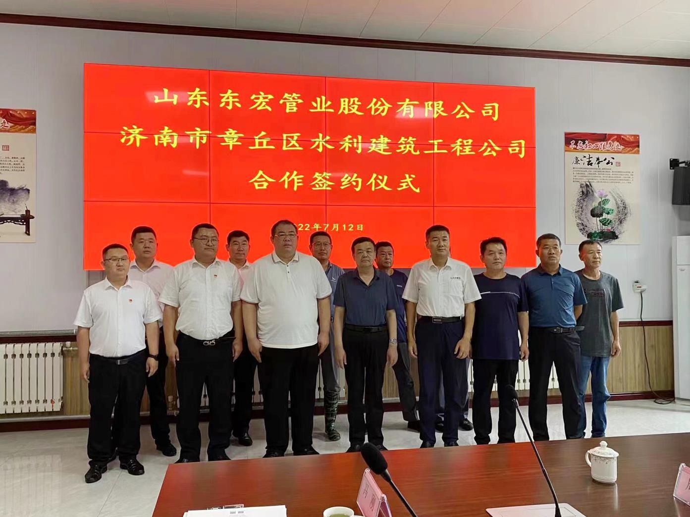7月12日,东宏股份党委书记、总裁倪奉尧一行前往济南市章丘水利建筑开云app官方在线入口公司开展深化交流合作签约会。副总裁樊鹏,董事会秘书寻金龙,核算部部长孔令彬,鲁北市场武新建、冯刚陪同参加。