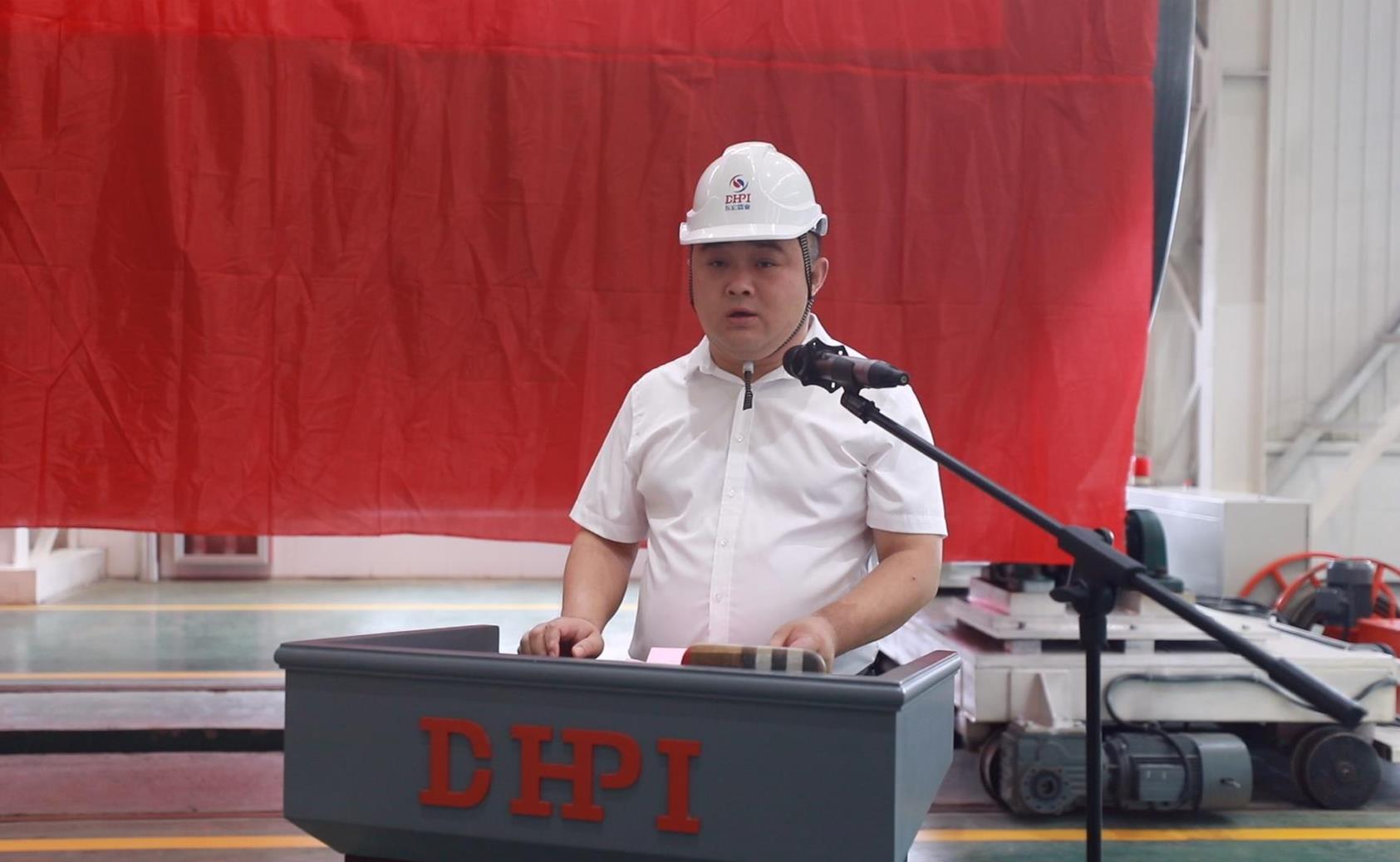 副总裁孔智勇在仪式上发表致辞,他表示,经过技术、生产骨干的无数个昼夜努力与拼搏,公司先后突破了超大口径钢管成型、2.7MPa超大口径水压实验等诸多瓶颈使得成品管顺利下线,并最终得到了引汉济渭项目考察组的认可。未来,东宏人必将发扬不畏困苦,攻坚克难的卓越品质,继续面对接下来的每一个困难。