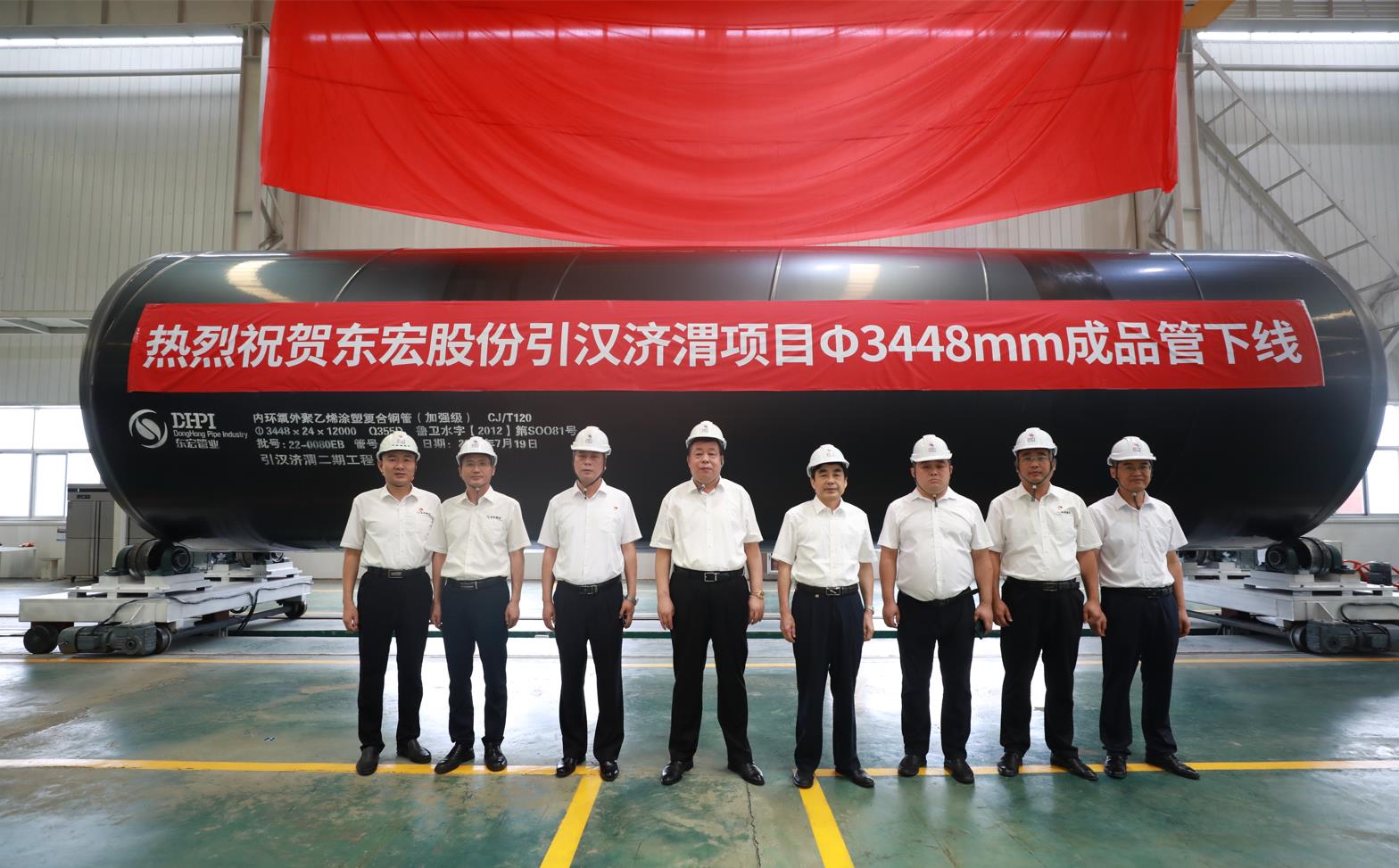 7月20日,公司引汉济渭项目专用Φ3448mm成品管下线仪式在南厂区B5车间隆重举行。董事长倪立营、党建指导员赵胜,副总裁刘彬、孔智勇、刘勇、杨翠伟、樊鹏、薛春德及营销序列、项目生产专班等相关人员出席仪式,活动由副总裁薛春德主持。