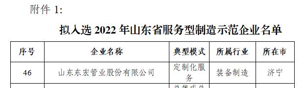 2022年10月17日,山东省工业和信息化厅发布了《拟入选2022年山东省服务型制造示范名单公示》,公司成功入选2022年山东省服务型制造示范企业。