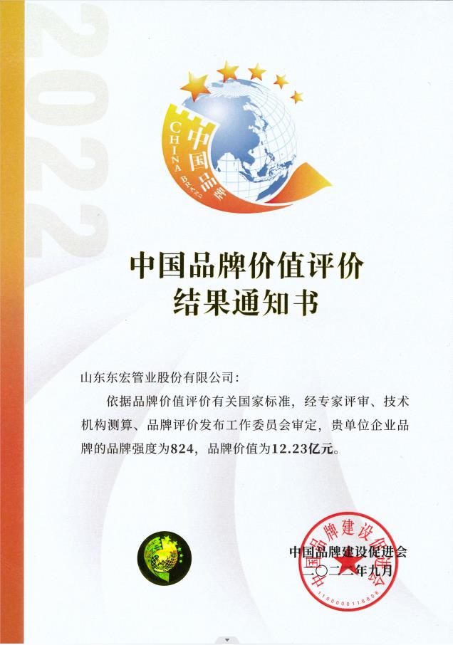 为贯彻落实国务院“推动形成具有中国特色的品牌机制评价机制”要求,培育更多优秀中国品牌,新华社、中国品牌建设促进会和中国资产评估协会联合主办了“2022年品牌价值评价”活动,经过多轮测评,东宏股份以品牌强度824,品牌价值12.23亿元的好成绩荣登榜上。