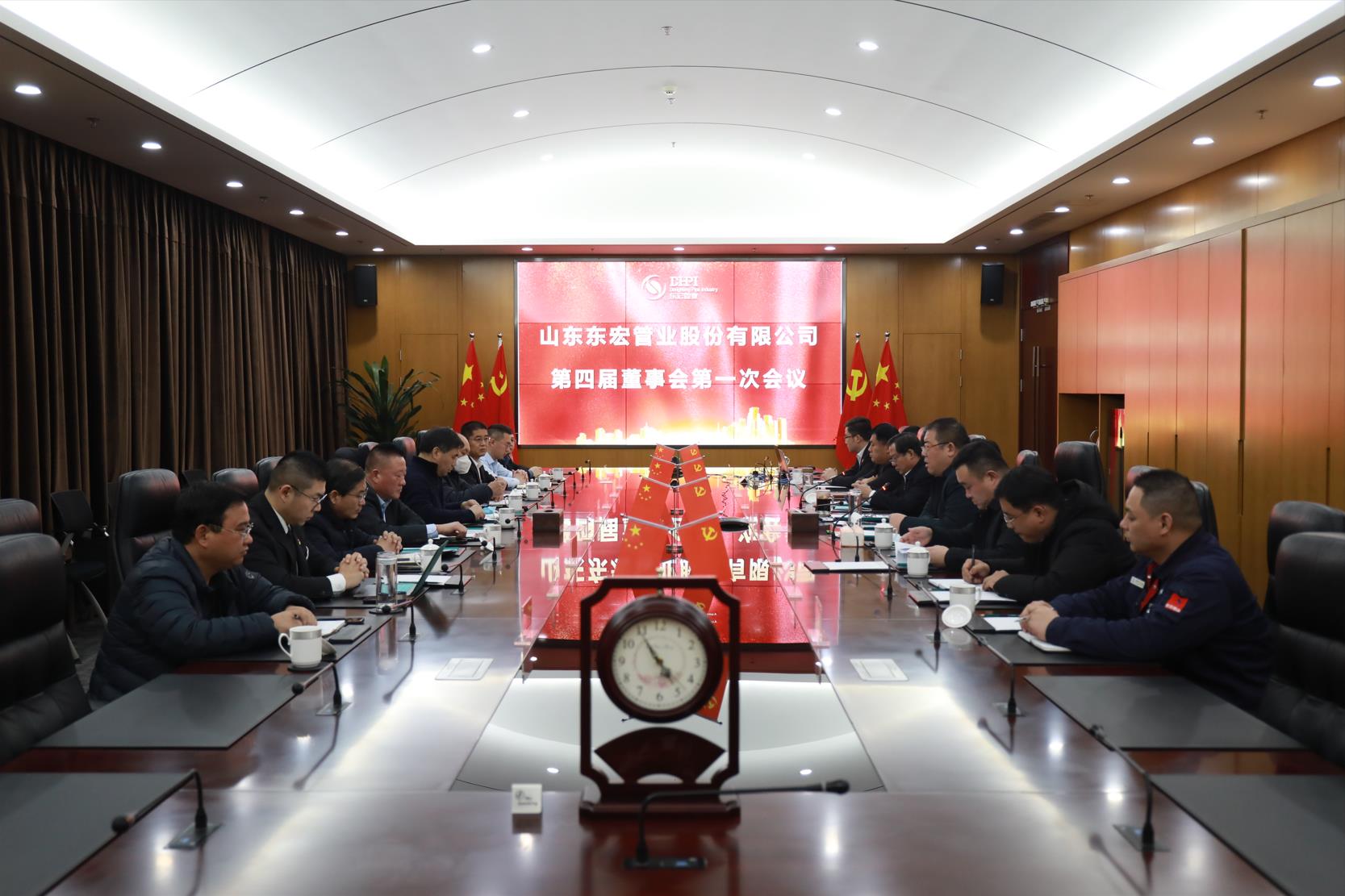 第四届董事会第一次会议上,全体董事听取审议并全票通过了东宏股份《关于选举董事长、副董事长的议案》、《关于选举董事会专门委员会委员的议案》等十一项议案。