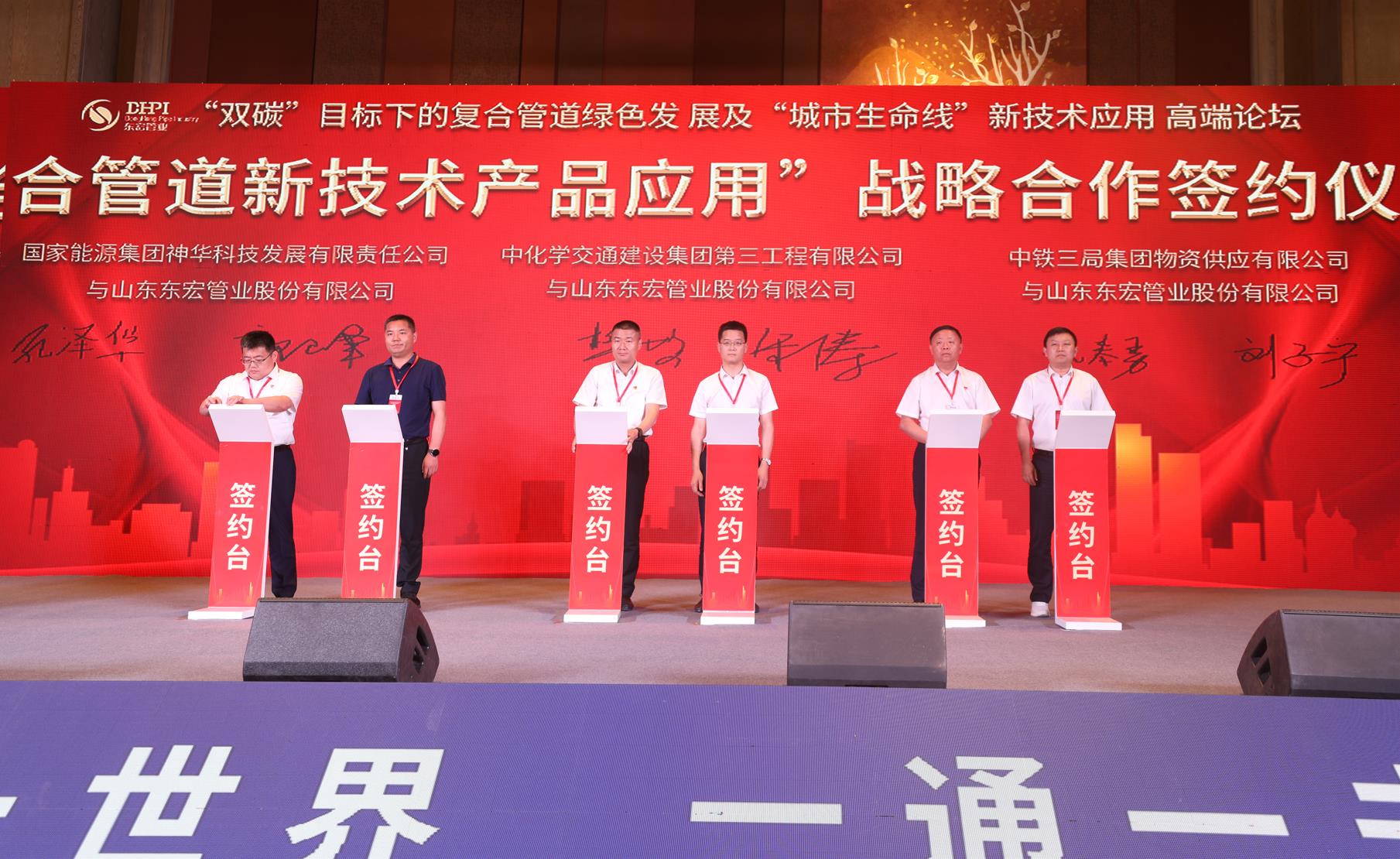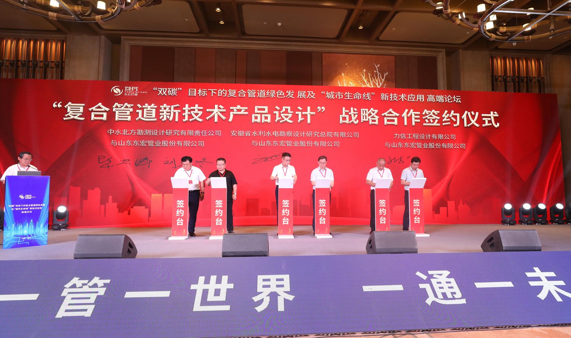 在8位业内领军专家的精彩分享之后,本次论坛进入成果转化环节,多家领域内代表性设计院和头部企业与东宏股份进行了“复合管道新技术产品设计”战略合作签约仪式和“复合管道新技术产品应用”战略合作签约仪式。