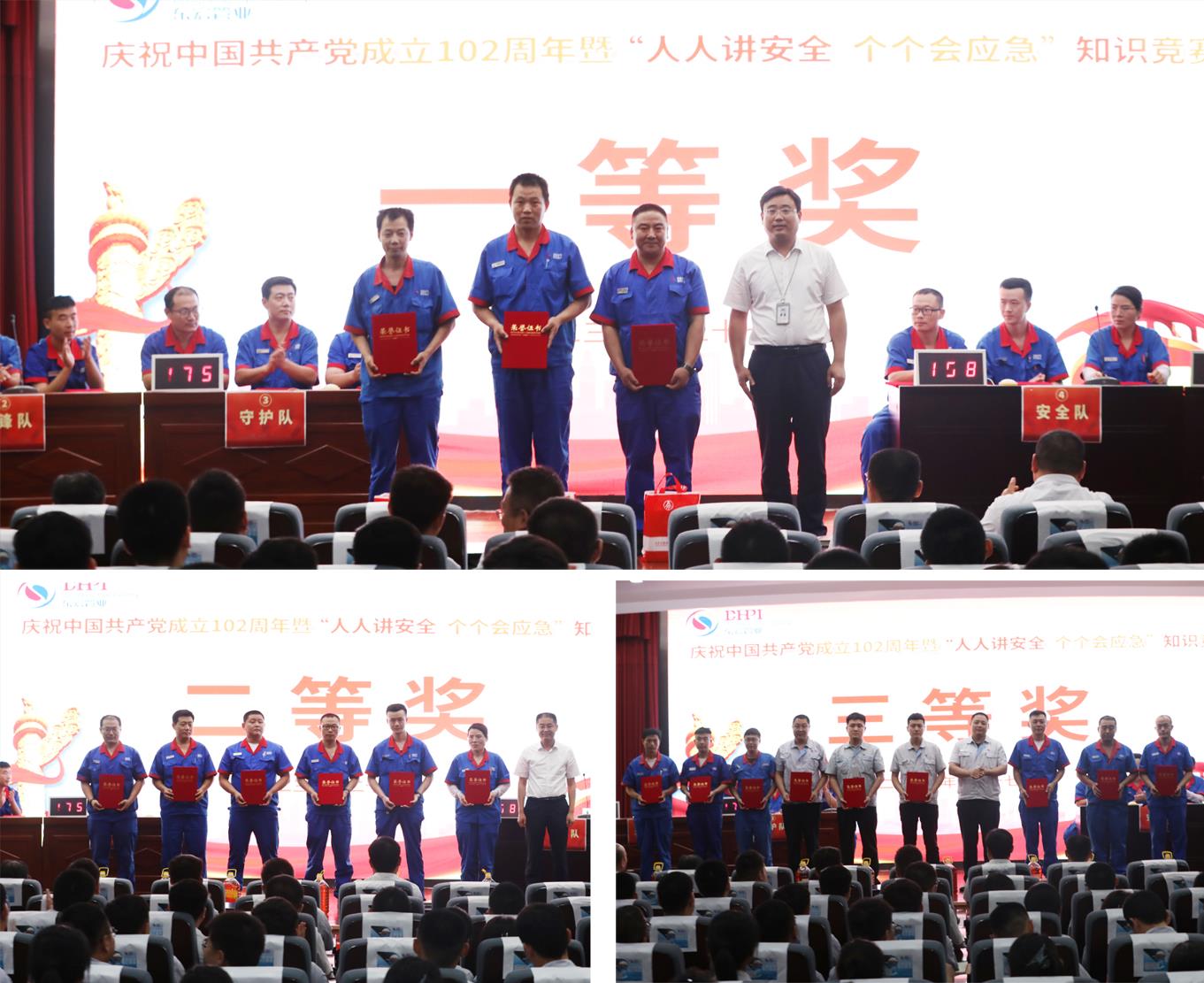 6月27日,东宏股份庆祝中国共产党成立102周年暨“人人讲安全,个个会应急”全员知识竞赛活动在研发中心多功能厅隆重举行。公司经营管理团队、班组长以上人员参加活动。
