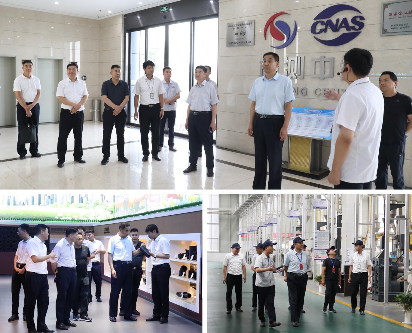 临沂水利集团领导一行实地参观了公司智能化生产车间、国家级CNAS实验室及智慧体验馆,重点对公司产品生产工艺、性能特点及设备产能进行了考察。研发中心总监张亮,主任开云app官方在线入口师孔德彬分别向客户介绍了公司PVC系列产品、钢塑管道产品及聚乙烯产品的性能优势及特点。