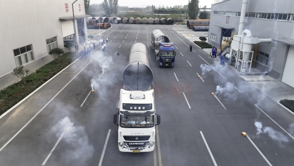 首批管材在欢快的鞭炮声和见证者的目视下驶出厂区。东宏股份必定不负使命,坚决扛起上市公司的责任担当,坚决完成φ3048mm防腐供水管道项目交付任务,让客户满意、让公司放心、让行业认可。