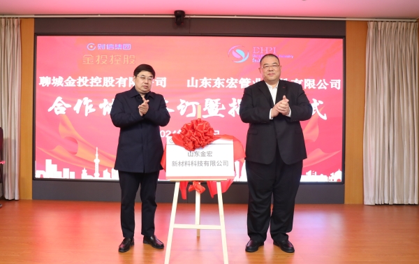 东宏股份总裁倪奉尧在致辞中表示,这是东宏股份2024年合资合作签约的第一单,东宏股份将与财信集团“想在一起、干在一起、拼在一起”,在水利、水务、市政、热力、基础设施建设等多领域开展合作,共同推动金宏新材料在市场运作、项目建设等方面,实现内外部资源有序运转、顺畅配合,塑造发展动能,发挥最大效能,服务聊城市及周边市场发展大局,合力打造高质量的国企、民营合作新样板。