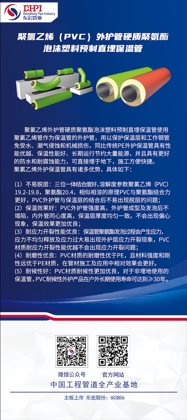 聚氯乙烯(PVC)外护管硬质聚氨酯泡沫塑料预制直埋保温管