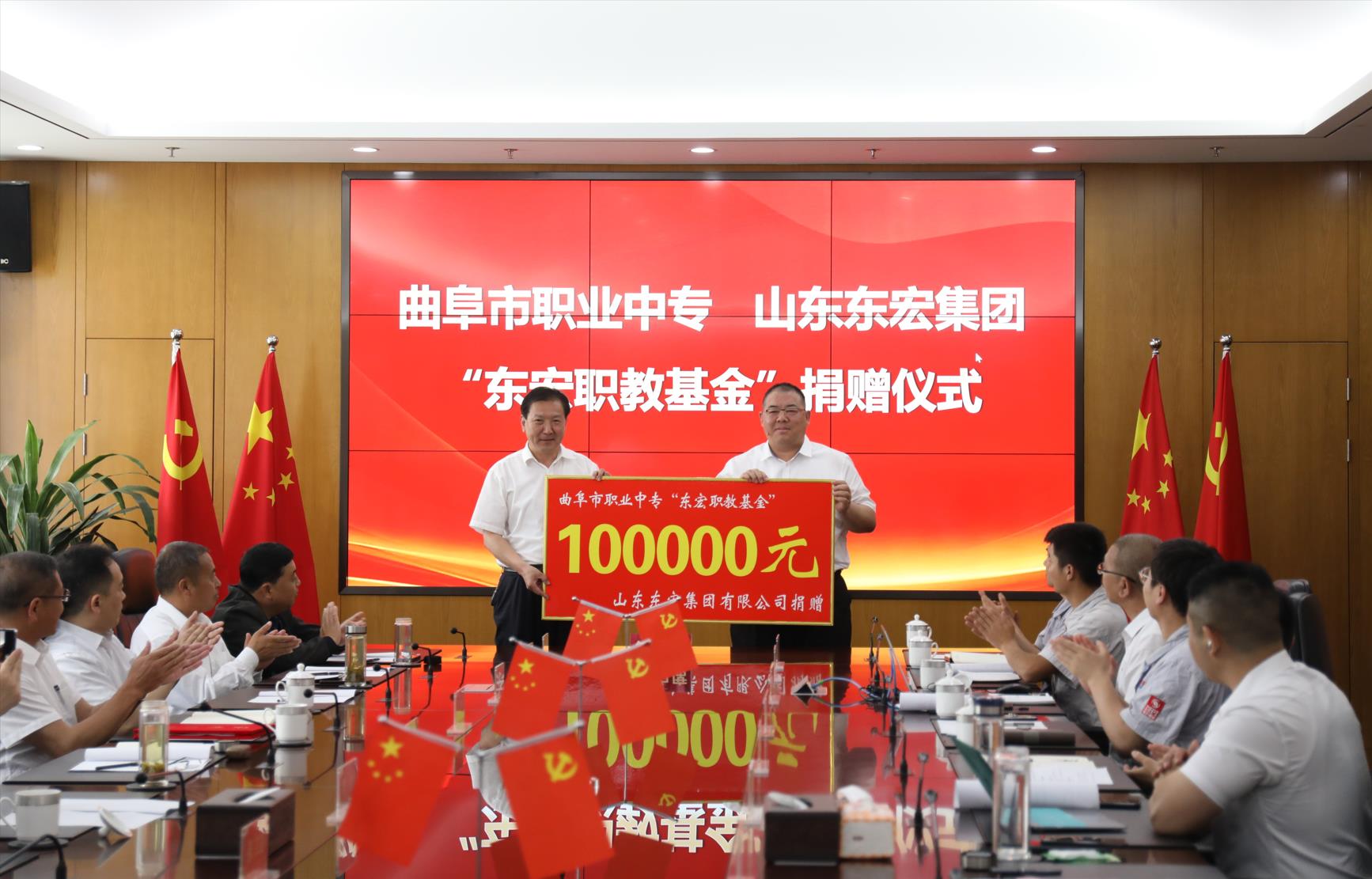 曲阜市新能源新材料产教融合共同体成立大会暨“东宏职教基金”捐赠仪式在公司举行05/29 . 2023