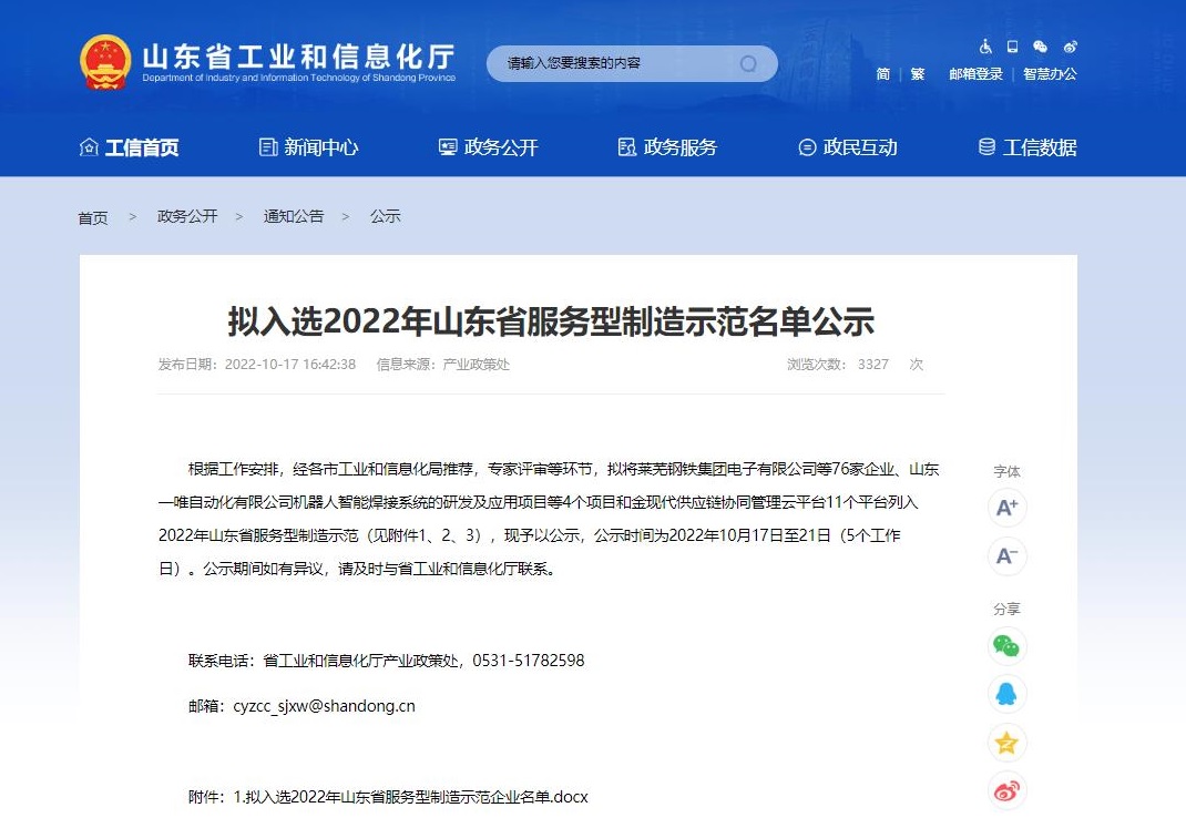热烈祝贺公司入选2022年山东省服务型制造示范企业10/16 . 2022